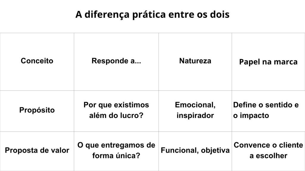 Neste texto, quero mostrar a diferença entre propósito e proposta de valor, explicar a origem de cada uma, como elas entraram no mundo das marcas e por que saber essa diferença pode evitar que sua comunicação se torne vazia ou confusa.